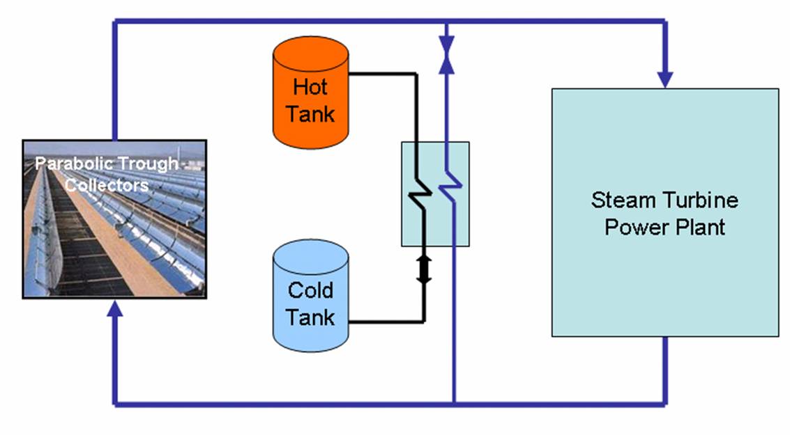 tank system in which some of the heat from the Parabolic Trough